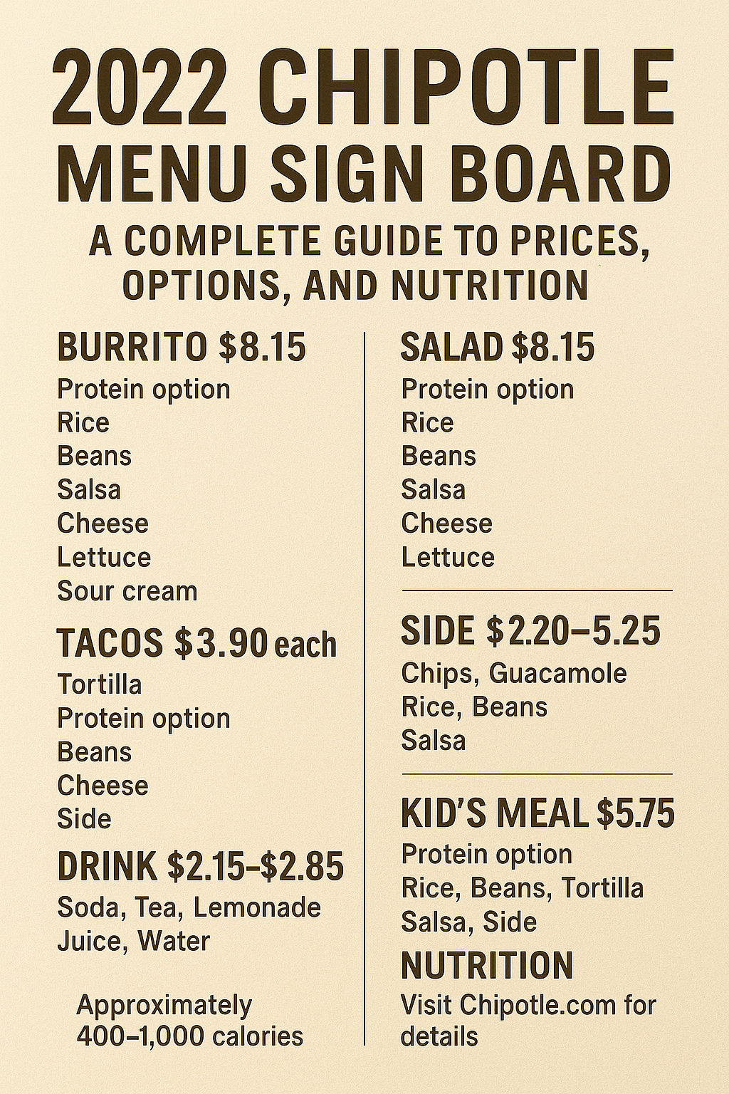 Next time you visit Chipotle, don’t overlook the Drinks Menu. Try pairing your favorite meal with a new beverage — you might just discover your perfect flavor combination.